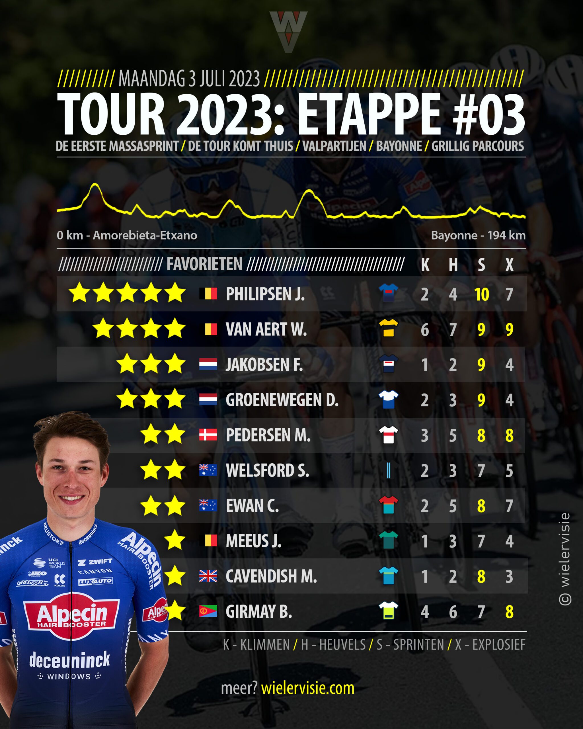 Na de twee openingsetappes in het Baskenland is deze rit er een om even op adem te komen voor de klassementsrenners. Ze moeten enigszins opletten op de beklimmingen in de beginfase, maar zullen nergens in de problemen komen.