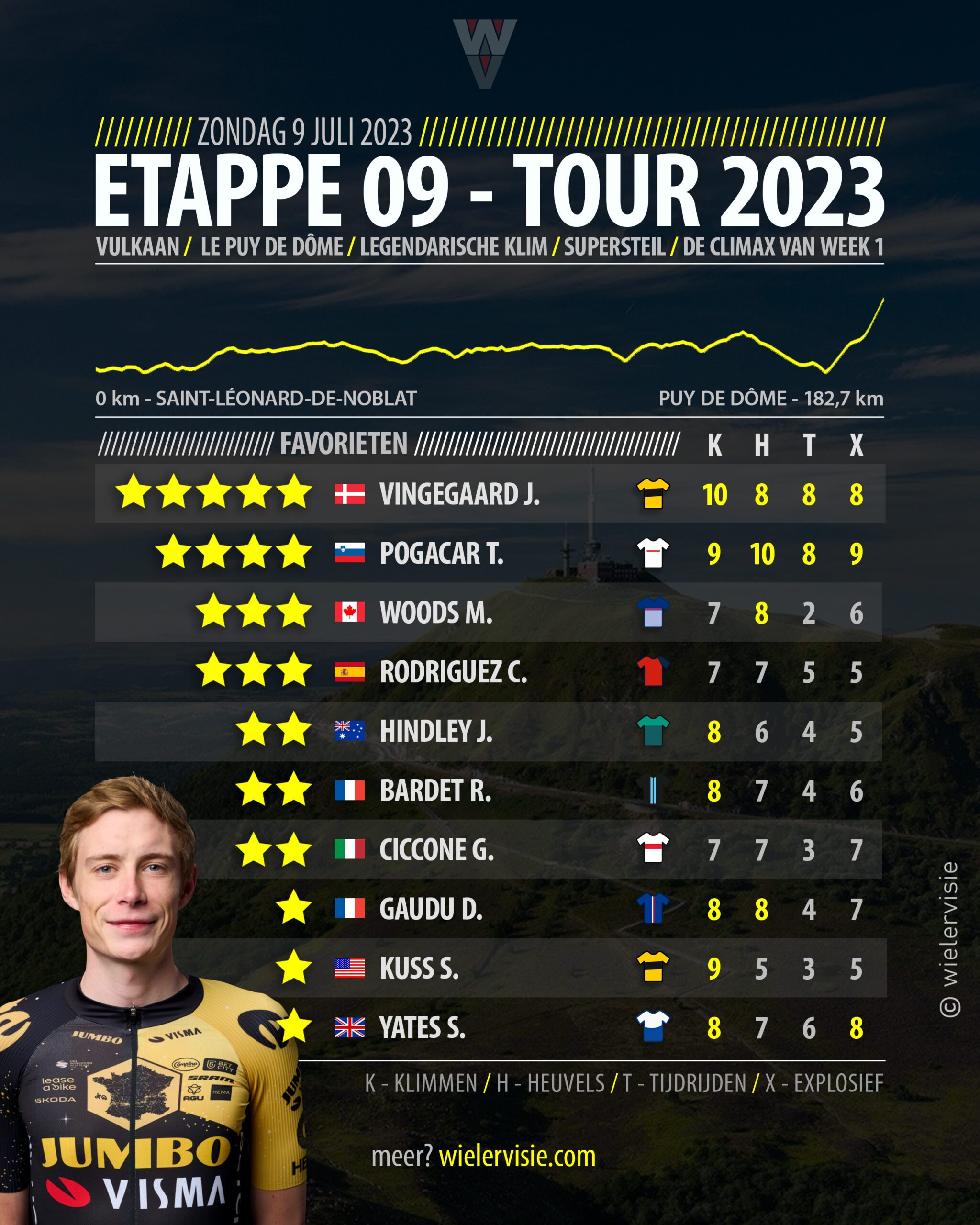 Dit is verreweg de belangrijkste etappe voor klassementsrenners in de openingsweek van de Tour. De klim naar de Puy de Dôme is loeisteil. Hier moeten alle klassementsrenners met de billen bloot.